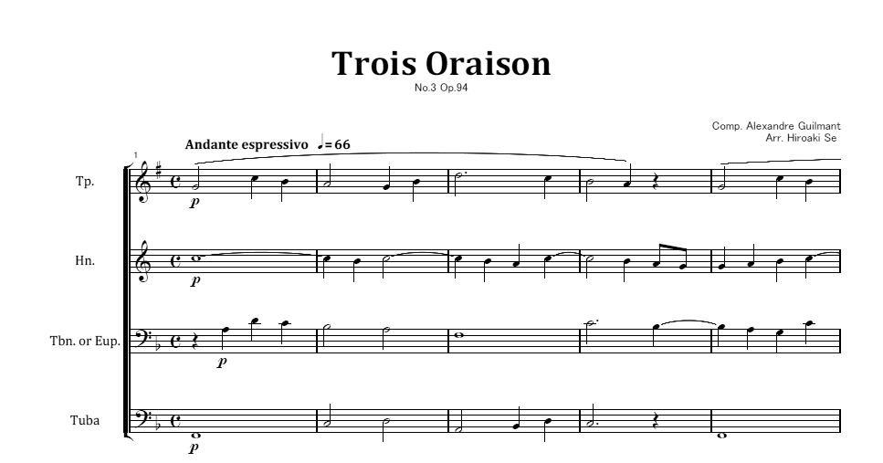 編成はTp.、Hn.、Tbn.またはEup.、Tubaです。