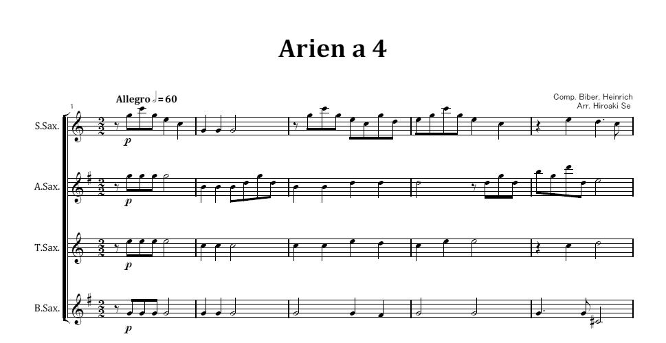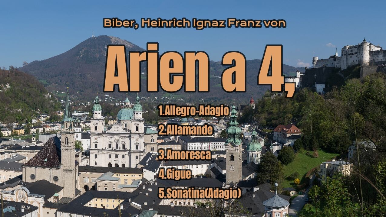 4声のアリアは5曲から成っています。1.アレグロ - アダージョ 2.アラマンデ 3.アモレスカ 4.ジーグ 5.ソナチネ(アダージョ)です。