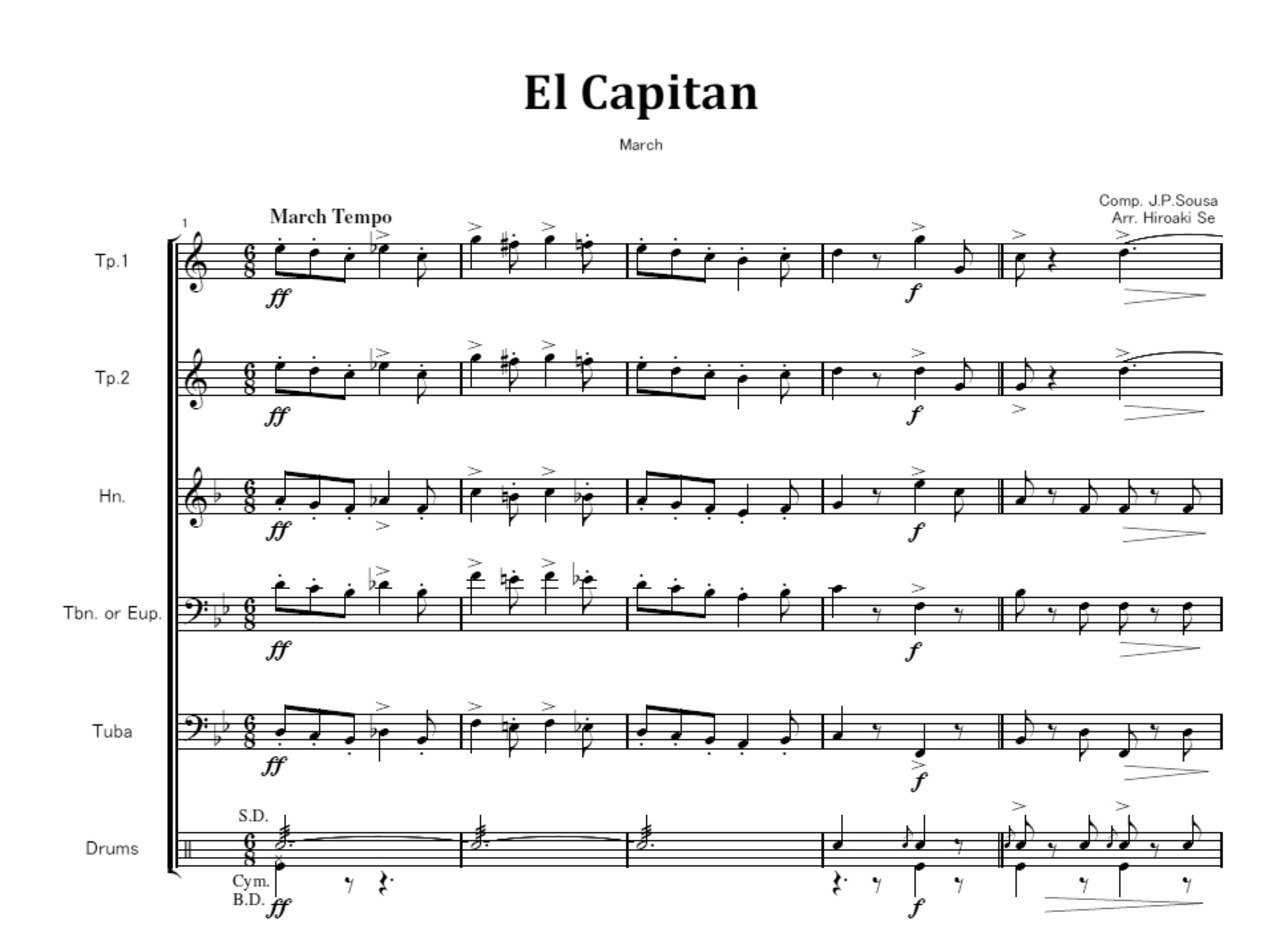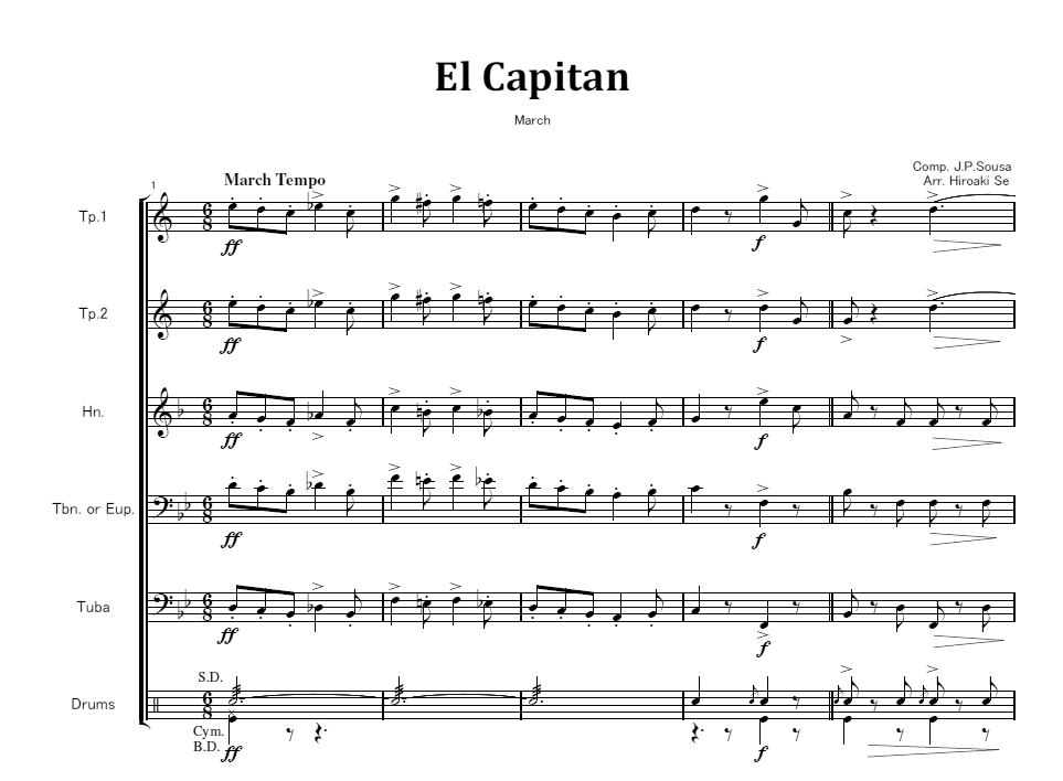 スーザの代表曲「エル・カピタン」誰もが知っているメロディです。今では元来の歌劇「オペレッタ」を離れてスタンダード化している曲です。