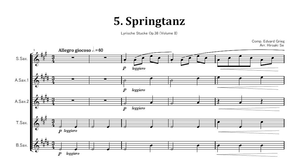 サックス五重奏 グリーグ :抒情小品集 第2集 Op.38-5