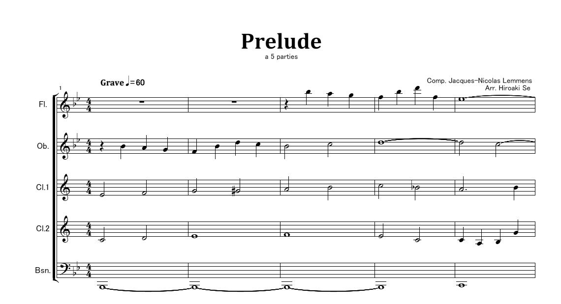 編成はFl.、Ob.、Cl.2本、Bsn.です。