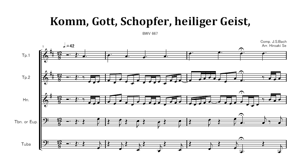 金管五重奏「来たり給え、創造主なる聖霊よ」BWV 667