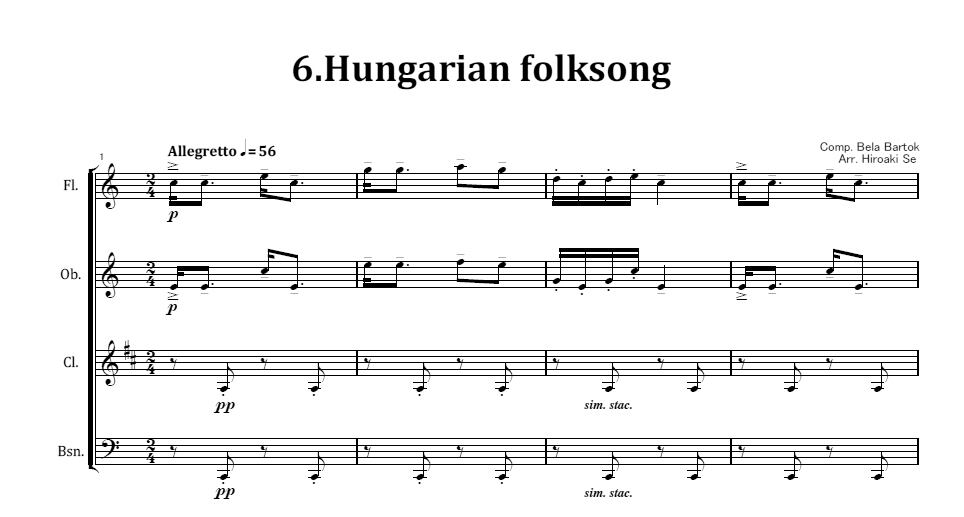 木管四重奏 10の小品 から第6曲「ハンガリー民謡」