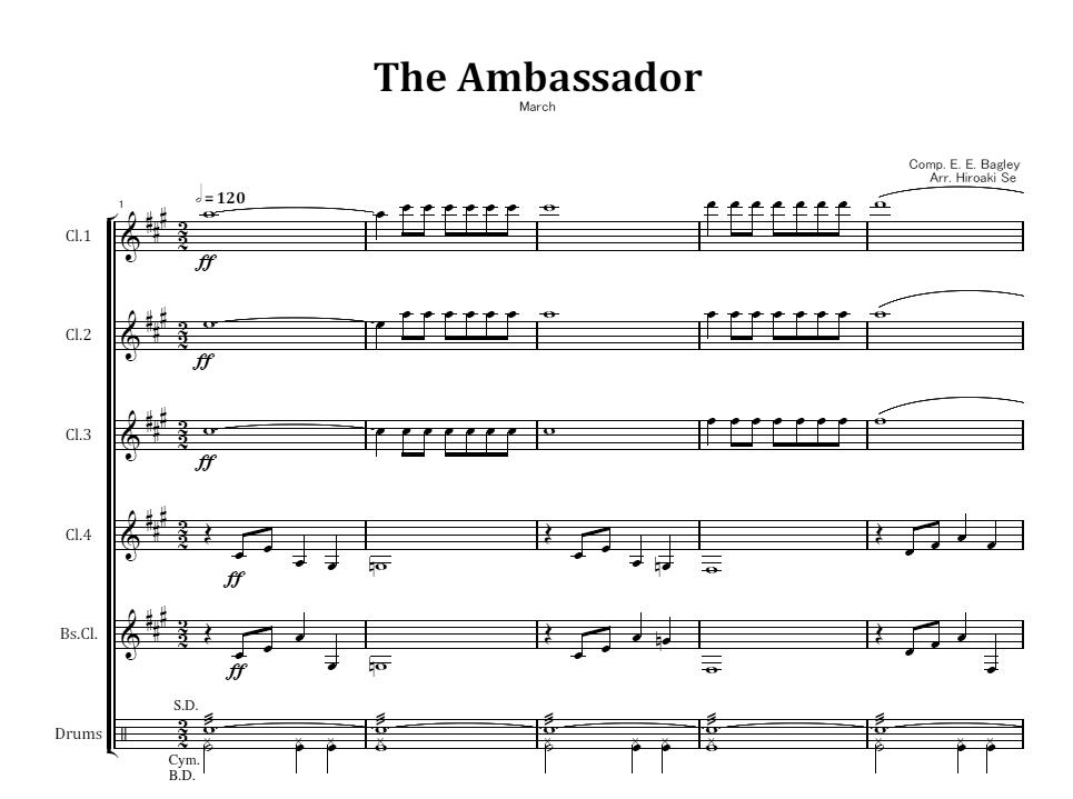 バグレイは行進曲の作曲家として有名で、この行進曲「アンバサダー」は"大使"という意味です。1907年に作曲され、ウィレムスミュージックから出版されました。
