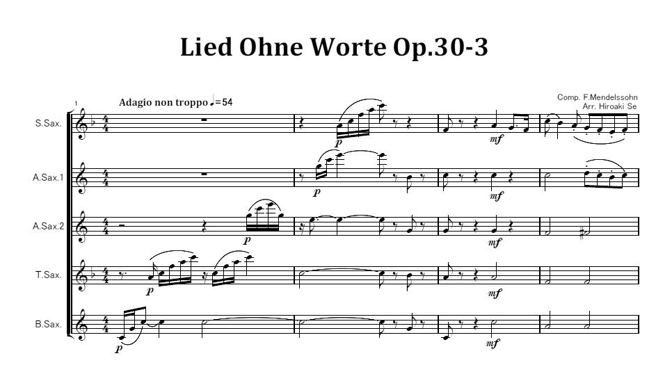 サックス五重奏 メンデルスゾーン 無言歌集 第2巻 作品30-3「慰め」