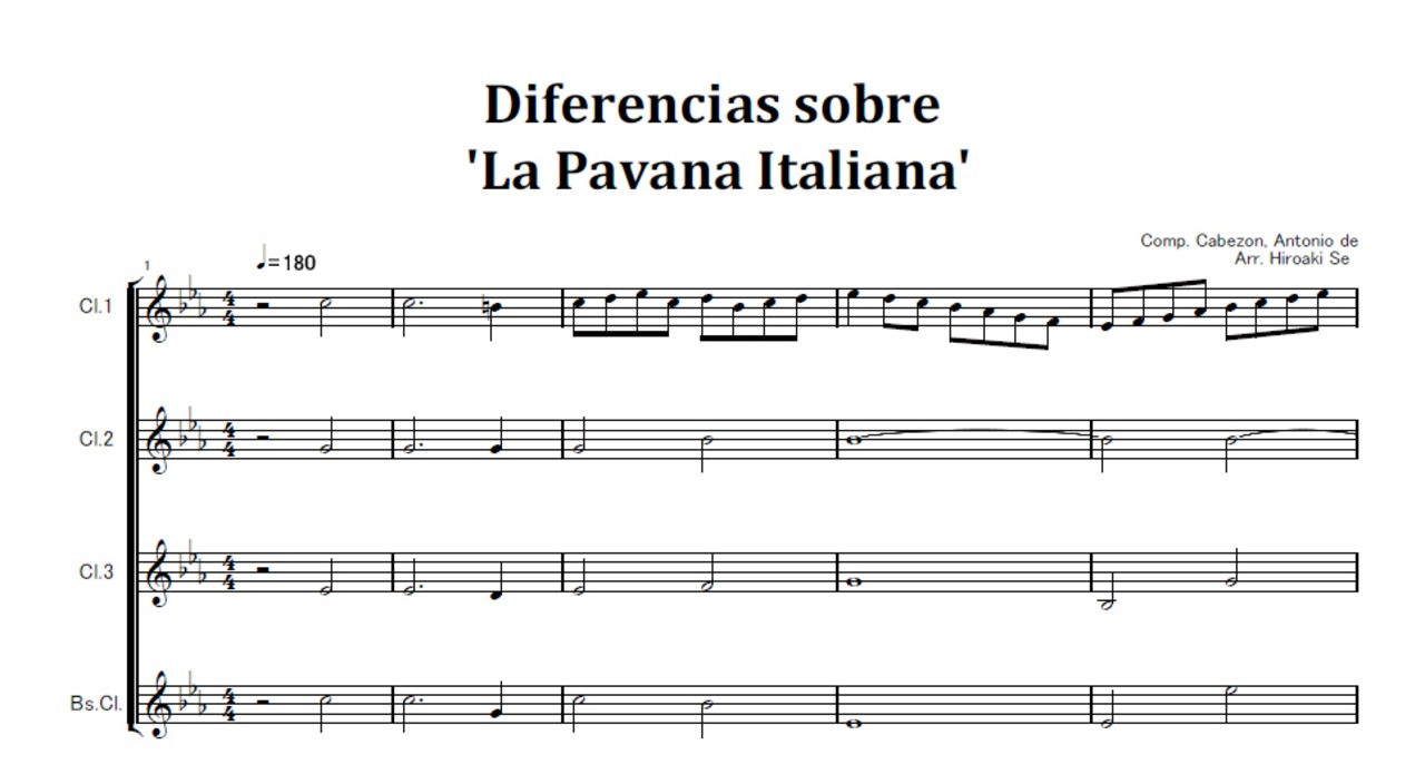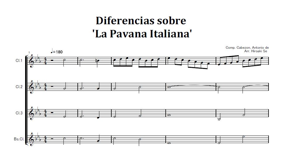 クラリネット四重奏 イタリア風パヴァーナによる変奏曲