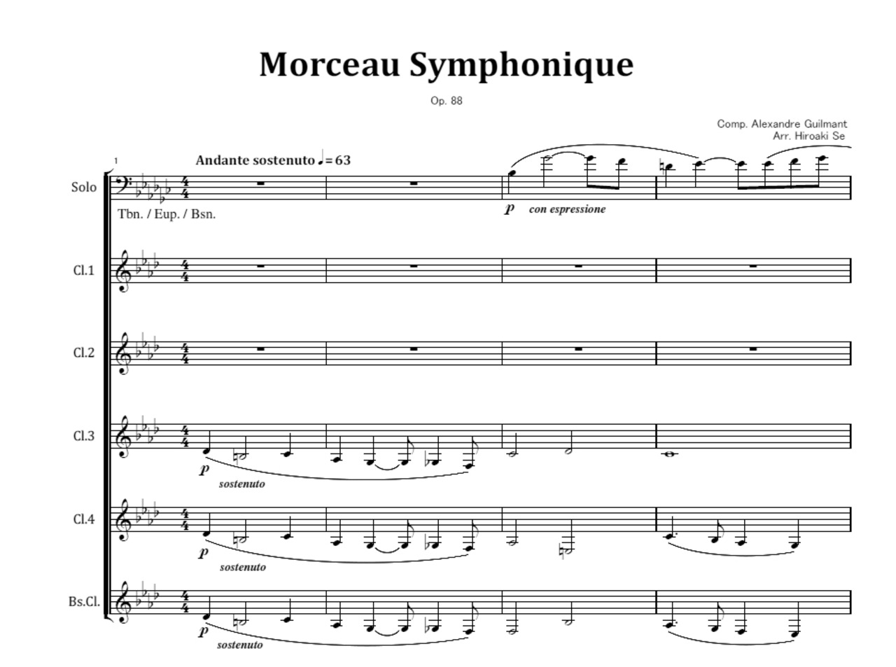 編成はSoloおよびCl.4本、Bs,Cl.です。