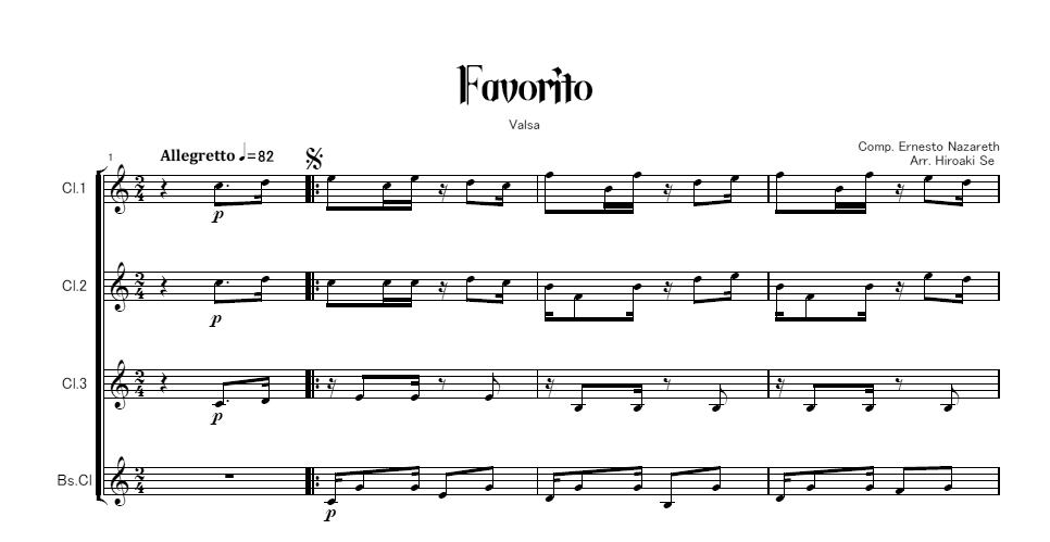クラリネット四重奏 ファヴォリート(お気に入り)、タンゴ