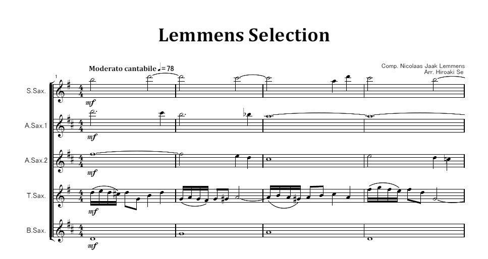 Lemmens Selectionは、アトリエ・アニマートがセレクションしたオルガンのための4つの短い楽曲からなる組曲です。