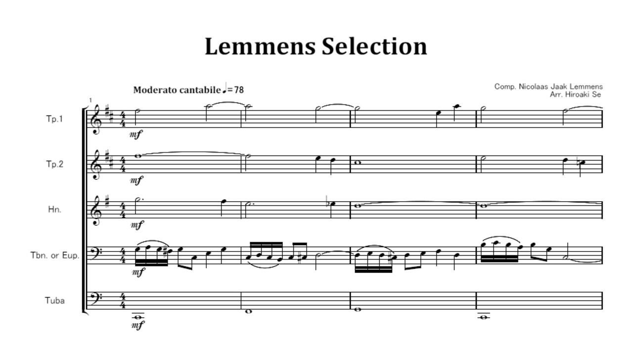 編成はTp.2本、Hn.、Tbn.またはEup.、Tubaです。