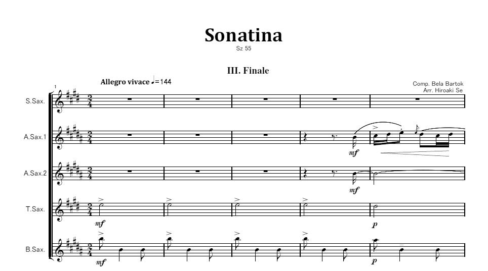サックス五重奏 トランシルヴァニアの主題によるソナチネから第3楽章