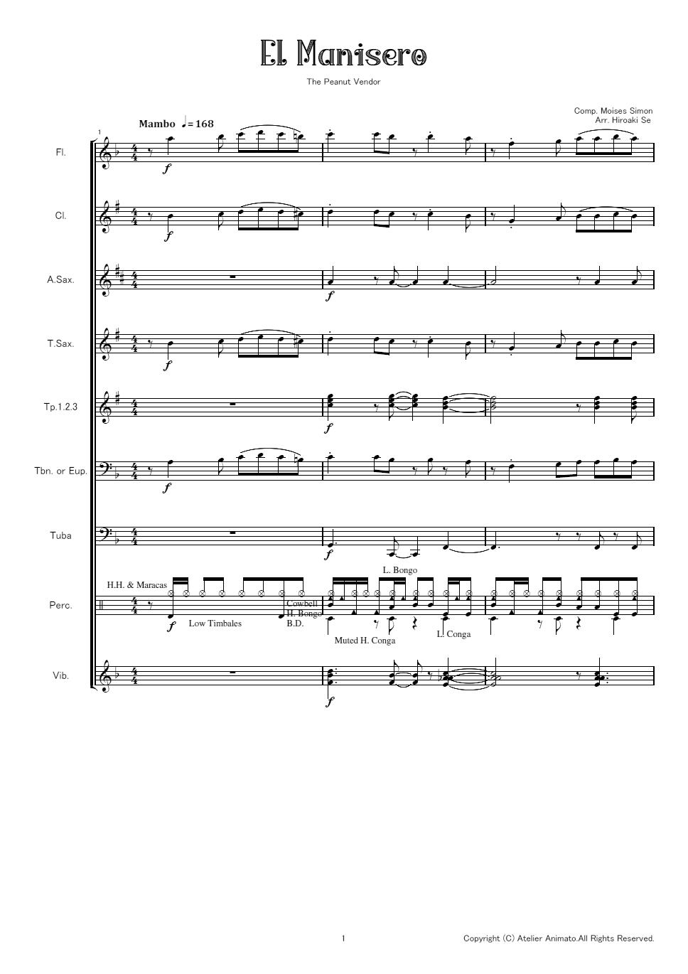 編成はFl.、Cl.、A.Sax.、T.Sax.、Tp.3本、Tbn. or Eup. 、Tuba、、Option El.Bs.、
