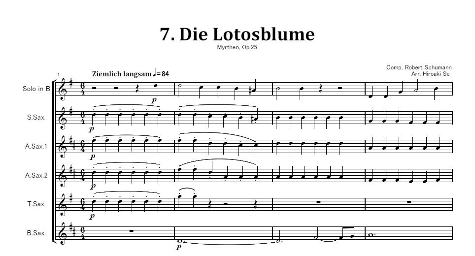 Solo+サックス五重奏 「ミルテの花(Myrthen)」作品25から 蓮の花