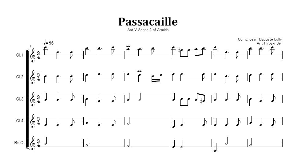 クラリネット五重奏 歌劇アルミードからパッサカリア