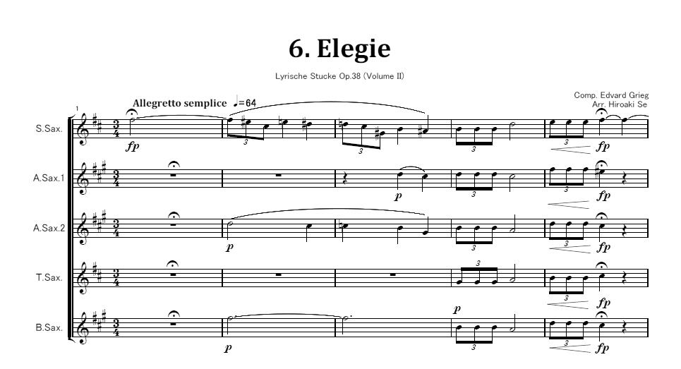 サックス五重奏 グリーグ :抒情小品集 第2集 Op.38-6