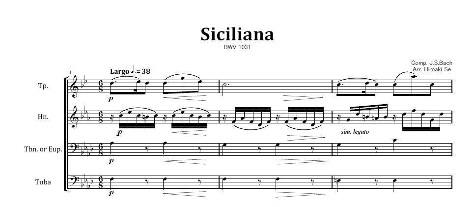 金管四重奏 シチリアーナ ソナタ 変ホ長調 BWV1031より