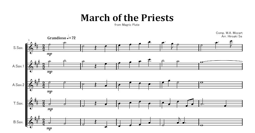 サックス五重奏 歌劇「魔笛」より 司祭たちの行進