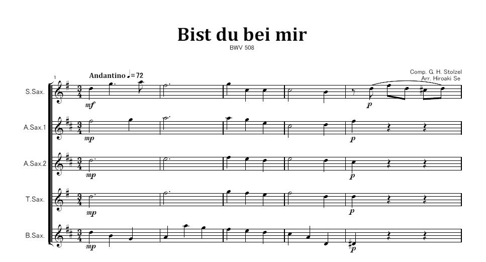サックス五重奏「あなたがそばにいてくだされば」BWV 508