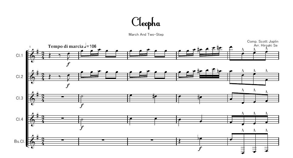 クラリネット五重奏 クレオファ:S.ジョプリン