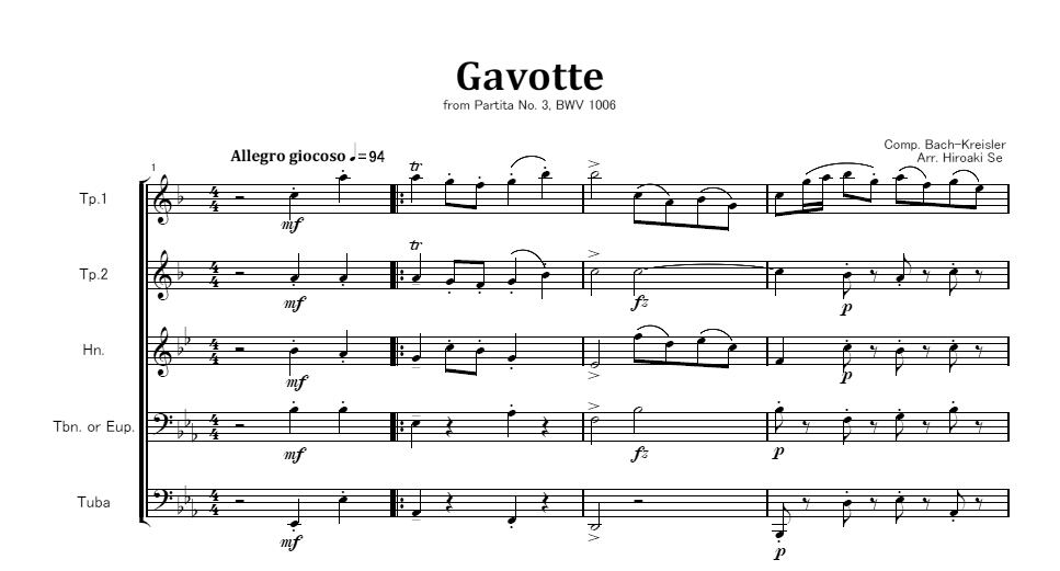 編成はTp.2本、Hn.、Tbn.またはEup.、Tubaです。