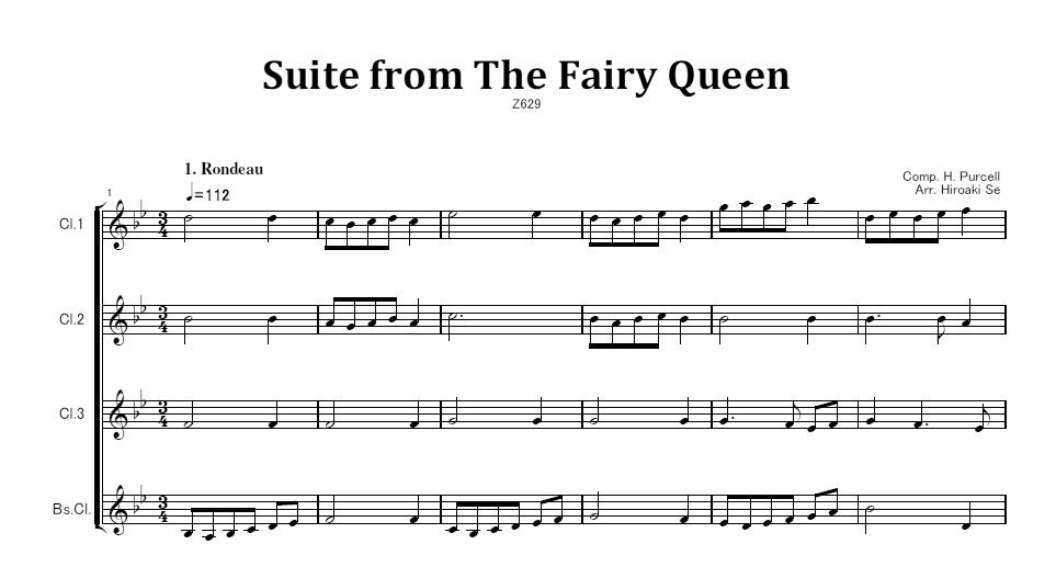 クラリネット四重奏 オペラ「妖精の女王」組曲