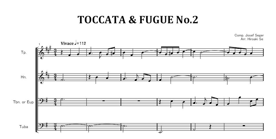 編成はTp.、Hn.、Tbn.またはEup.、Tubaです。
