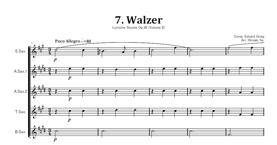 サックス五重奏 グリーグ :抒情小品集 第2集 Op.38-7