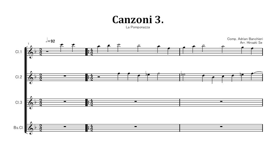 クラリネット四重奏 カンツォン第3番 ラ・ポンポナッツァ