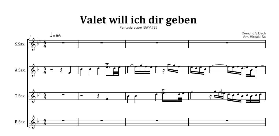 サックス四重奏 「われ汝に別れを告げん」による幻想曲 BWV 735