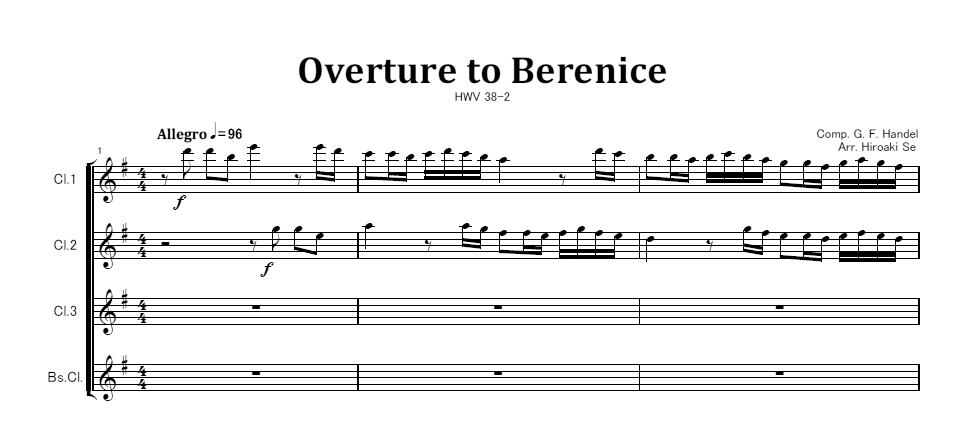 クラリネット四重奏「歌劇ベレニーチェへの序曲」から 2.アレグロ