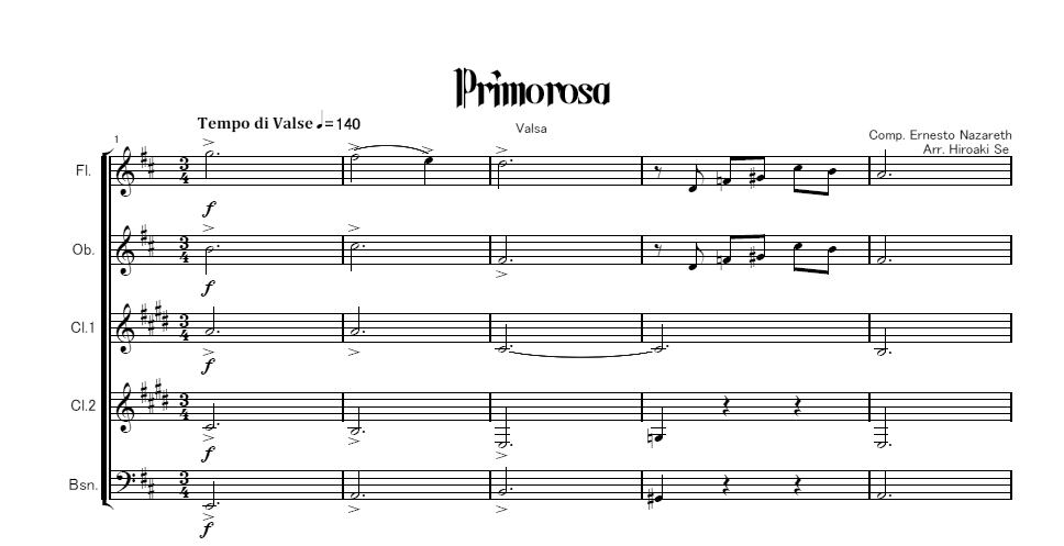 木管五重奏 プリモローザ(優美な)ワルツ