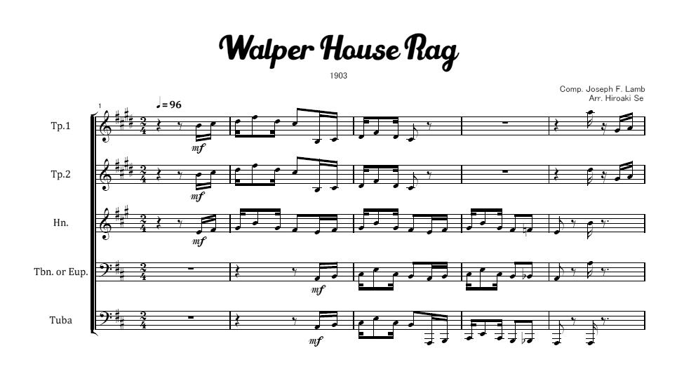 金管五重奏 ウォルパー・ハウス・ラグ