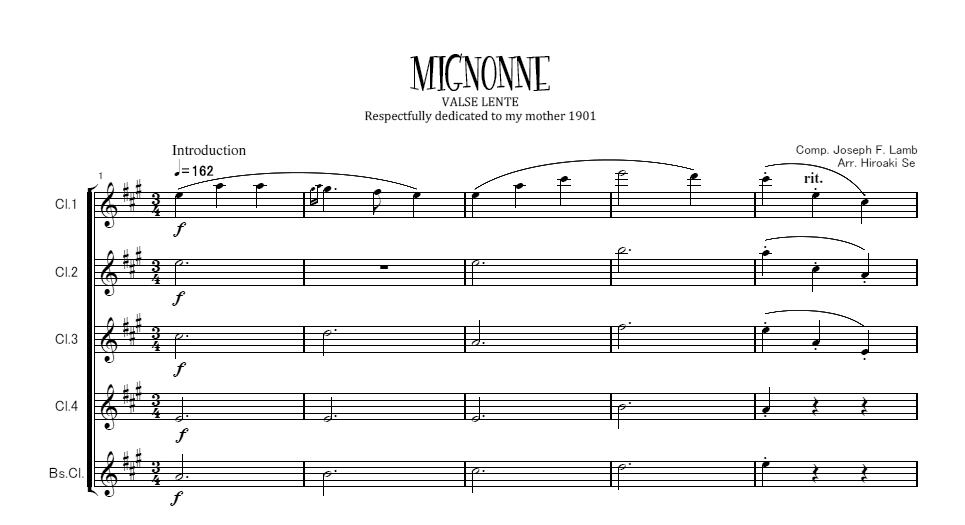 クラリネット五重奏 ミニョンヌ(スロー・ワルツ)
