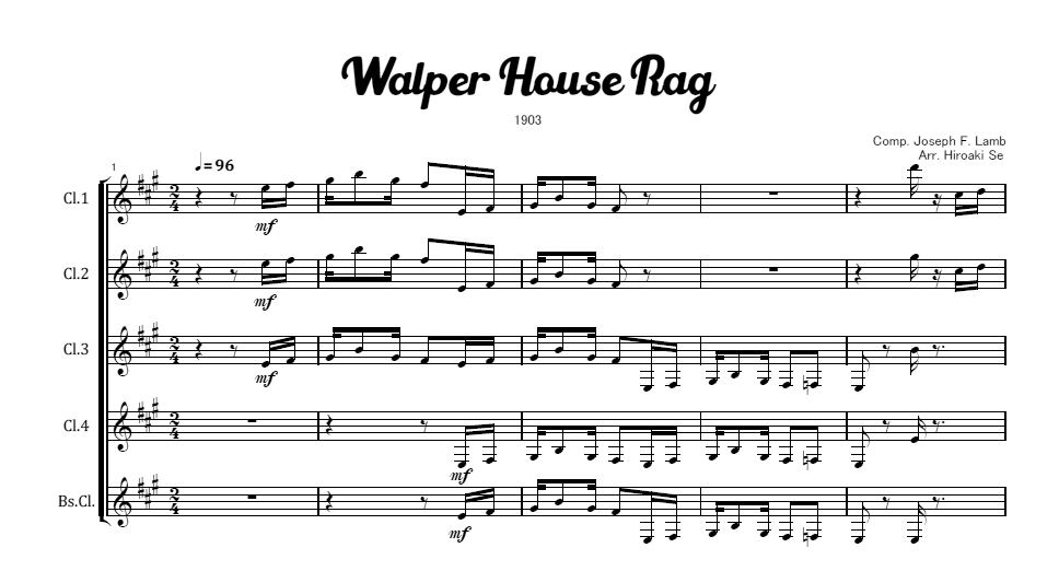 クラリネット五重奏 ウォルパー・ハウス・ラグ