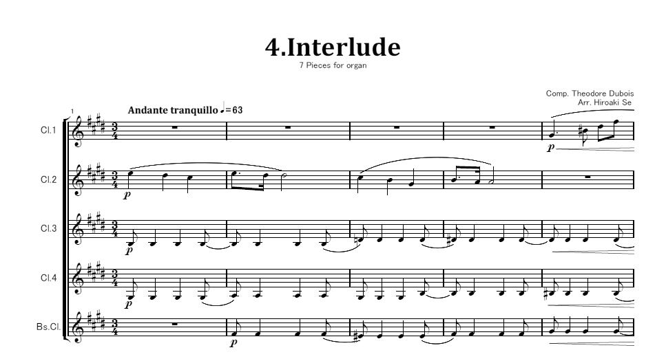 編成はCl.4本、Bs.Cl.です。