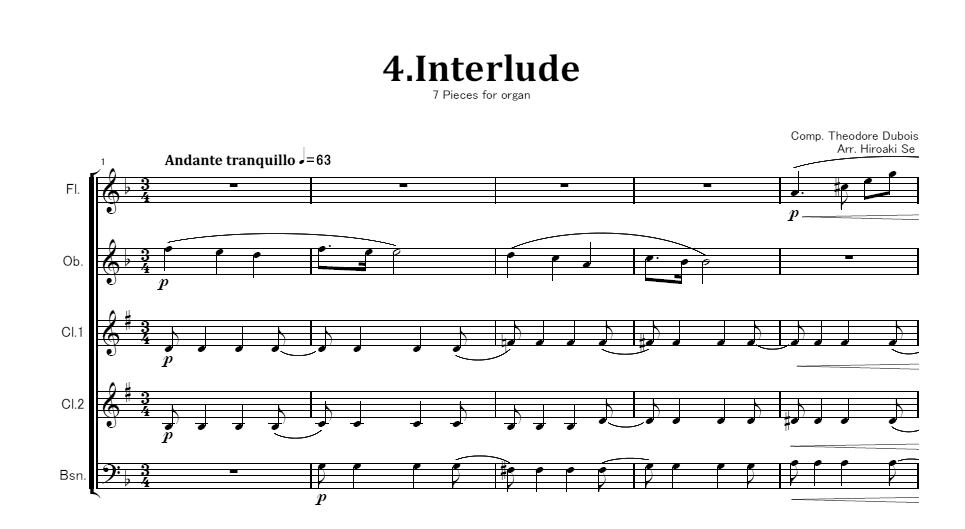 編成はFl.、Ob.、Cl.2本、Bsn.です。