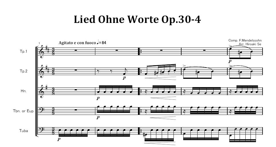 金管五重奏 メンデルスゾーン 無言歌集 第2巻 作品30-4「さすらい人」