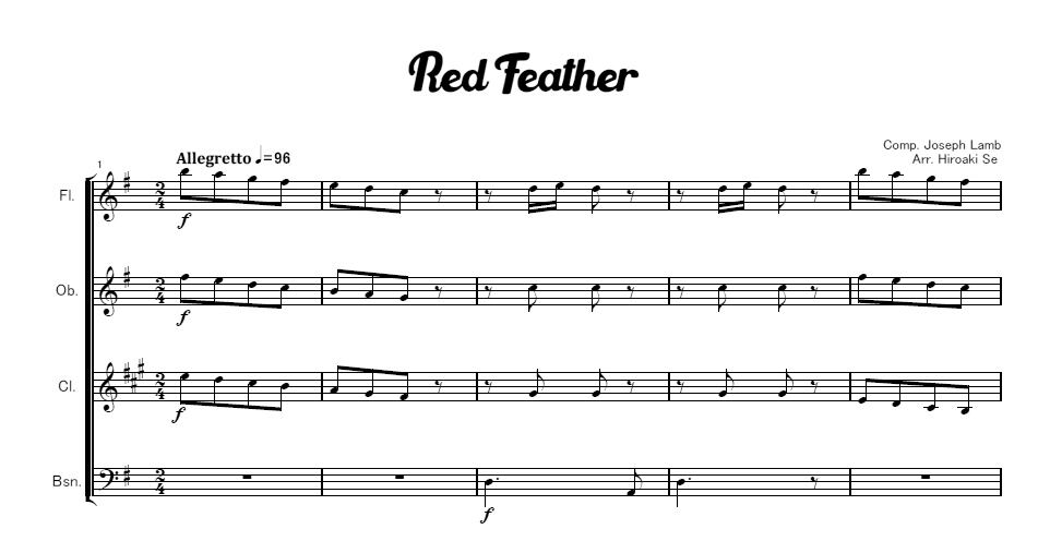 編成はFl.、Ob.、Cl.、Bsn.です。