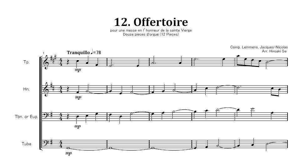 編成はTp.、Hn.、Tbn.またはEup.、Tubaです。