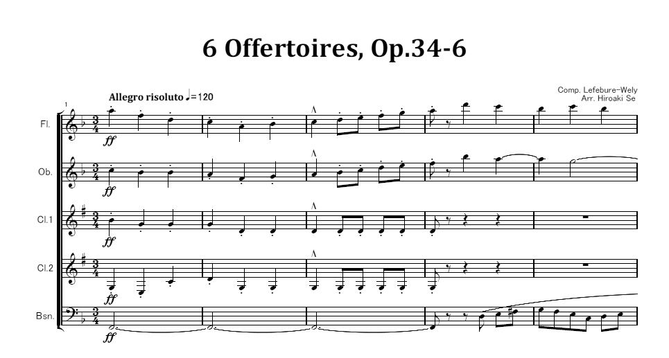 編成はFl.、Ob.、Cl.2本、Bsn.です。