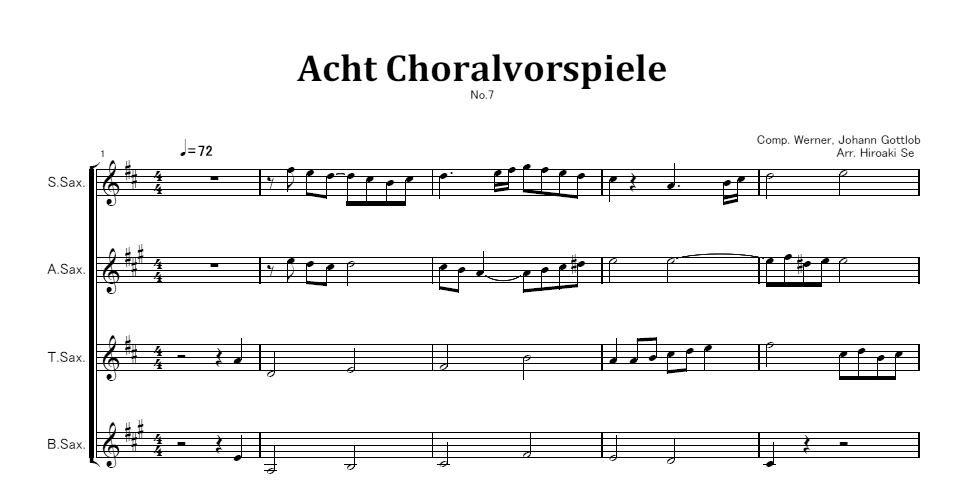サックス四重奏 8つのコラール前奏曲から第7曲