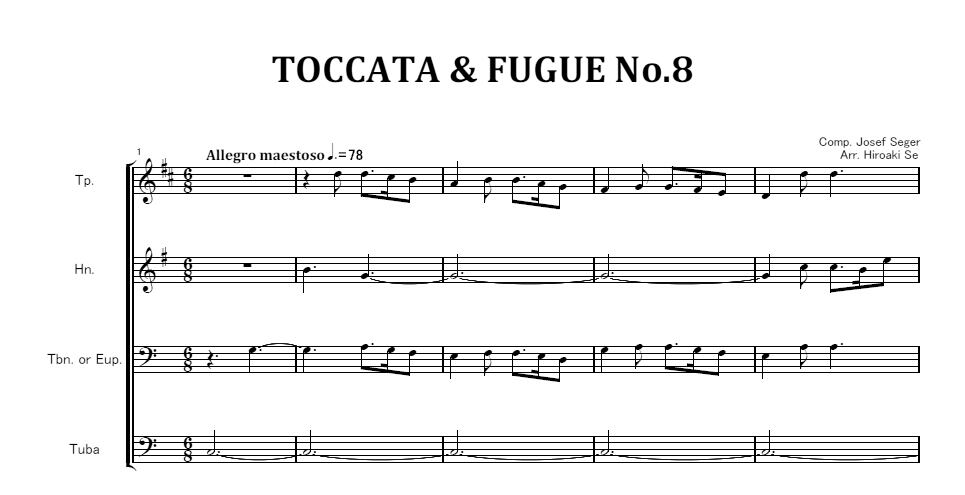 編成はTp.、Hn.、Tbn.またはEup.、Tubaです。