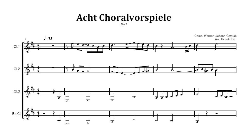 クラリネット四重奏 8つのコラール前奏曲から第7曲