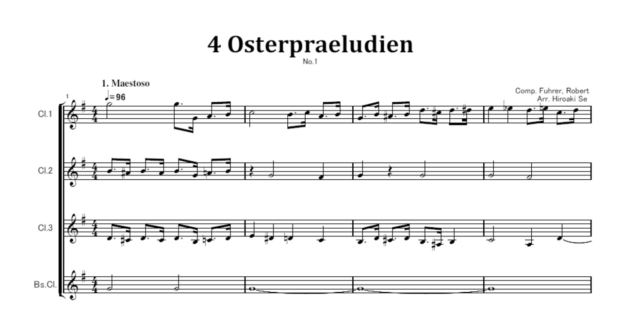 クラリネット四重奏 4つの復活祭前奏曲から第1曲