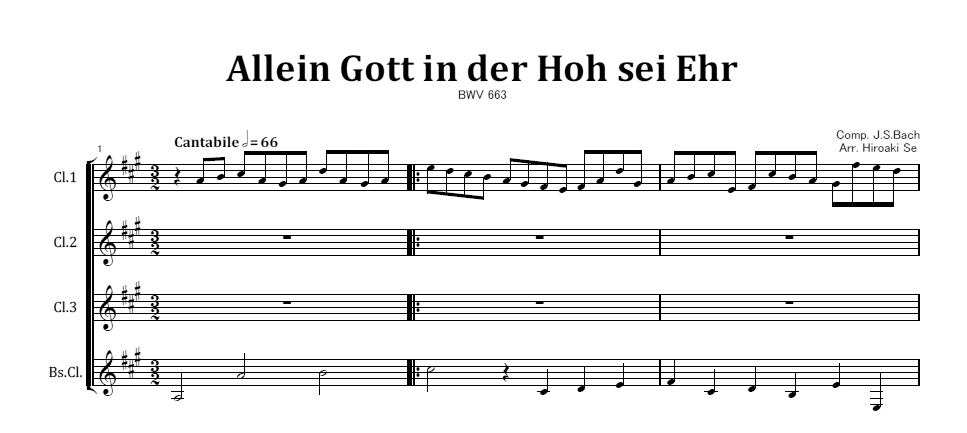 クラリネット四重奏「いと高きところには神にのみ栄光あれ」 BWV 663