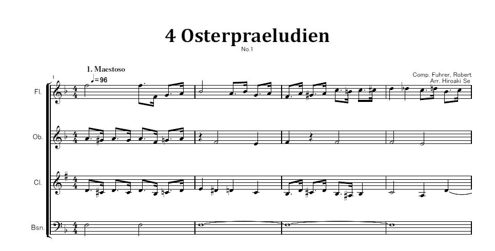 編成はFl.、Ob.、Cl.、Bsn.です。