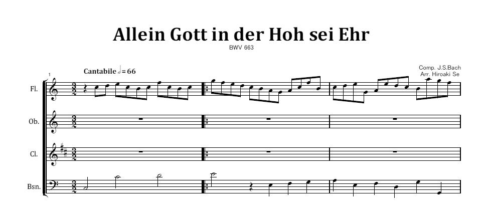 木管四重奏「いと高きところには神にのみ栄光あれ」 BWV 663