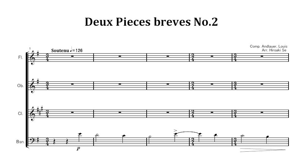 編成はFl.、Ob.、Cl.、Bsn.です。