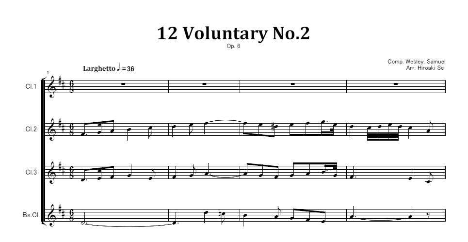 クラリネット四重奏 12のヴォランタリーから第2曲