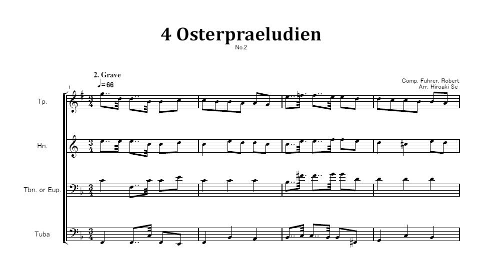 編成はTp.、Hn.、Tbn.またはEup.、Tubaです。